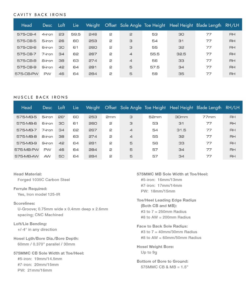 - The 575MMC #8-Wedges are First CNC Machined Muscleback Irons ever created in the industry for precision in CG and weight distribution.